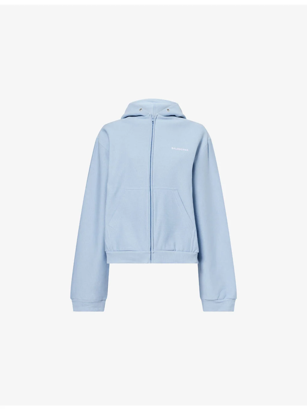Women's Balenciaga Back Zip-up Hoodie Regular Fit in Light Blue/white
