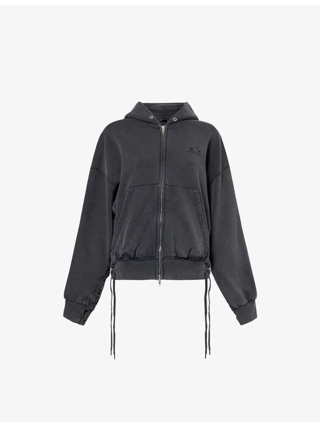PRODUCT DETAILS - Balenciaga cotton hoody - 100% cotton - Zip fastening - Relaxed fit, lined hood, long sleeves, two patch pockets at front, brand embroidery at chest, lace-up seams at sides and arms - Machine wash at 30°C - Made in Portugal - True to size - Model is 5ft 10in/1.78m and wears a size small Ref: R04589014