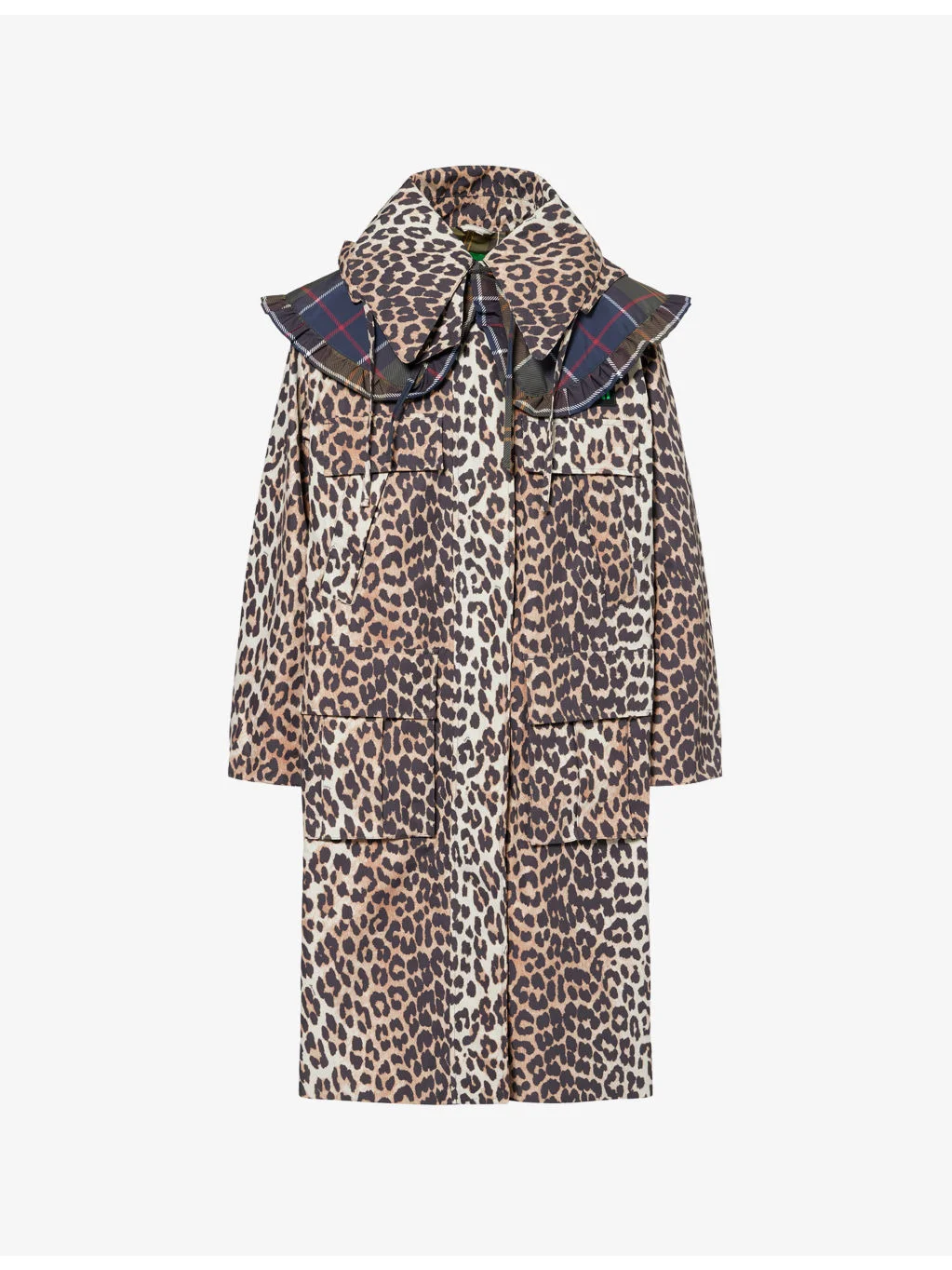 + Ganni Hooded Ruffled Checked Leopard-print Shell Parka