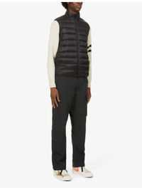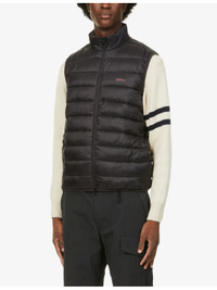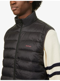 PRODUCT DETAILS - Barbour shell gilet - 100% polyamide; padding 100% polyester - Exposed zip fastening at front - Funnel neck, sleeveless, brand print at chest, slip pockets at sides, all-over quilted, fully padded and lined - Machine wash cold - Size medium: Length 26 in / 66 cm, chest 44 in / 112 cm - Lightweight, non-stretch