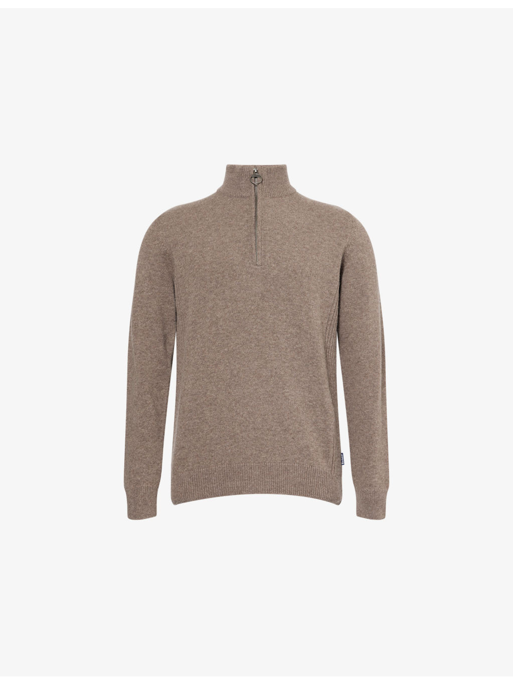 PRODUCT DETAILS - Barbour wool knitted top - 100% wool - Funnel neck, long sleeves, checked elbow patches, brand tab at sides, ribbed trims - Hand wash - Made in Turkey - Model is 6ft 2in/1.88m and wears a size medium - Lightweight, slight stretch Ref: R04492525