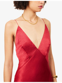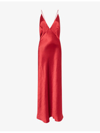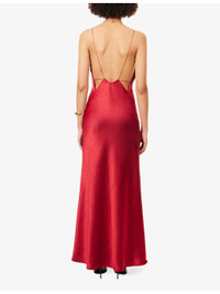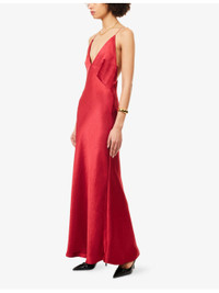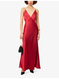 PRODUCT DETAILS - Bec + Bridge woven maxi dress - 100% polyester - Concealed zip fastening at side - Regular fit, plunge neckline, shoulder straps, lined cups, all-over satin texture, flared hem - Dry clean only - Made in Australia - True to size - Size UK 8: length 57in / 146cm - Model is 5ft 10in/1.78m and wears a size UK 8 - Lightweight, slight stretch Ref: R04552308