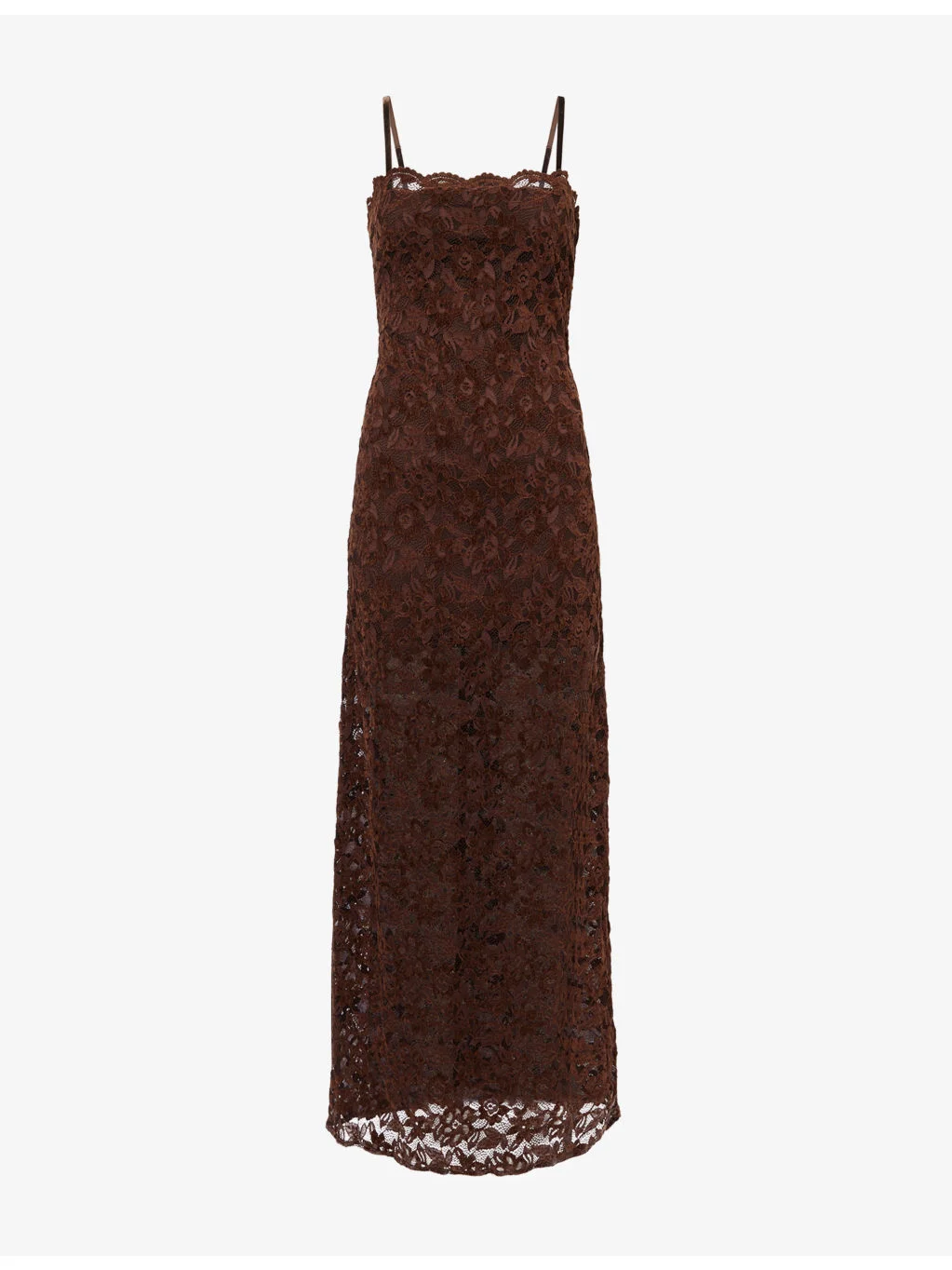 PRODUCT DETAILS - Bec + Bridge stretch-woven maxi dress - 50% nylon, 40% polyester, 10% elastane; lining 95% polyester, 5% elastane - Concealed zip fastening at back - Slim fit, scalloped neckline, adjustable shoulder straps, all-over fishnet and floral velvet pattern, partially lined - Hand wash cold - Made in Australia - True to size - Size UK 8: length 57in / 145cm - Model is 5ft 10in/1.78m and wears a size UK 8 - Lightweight, stretchy Ref: R04552303