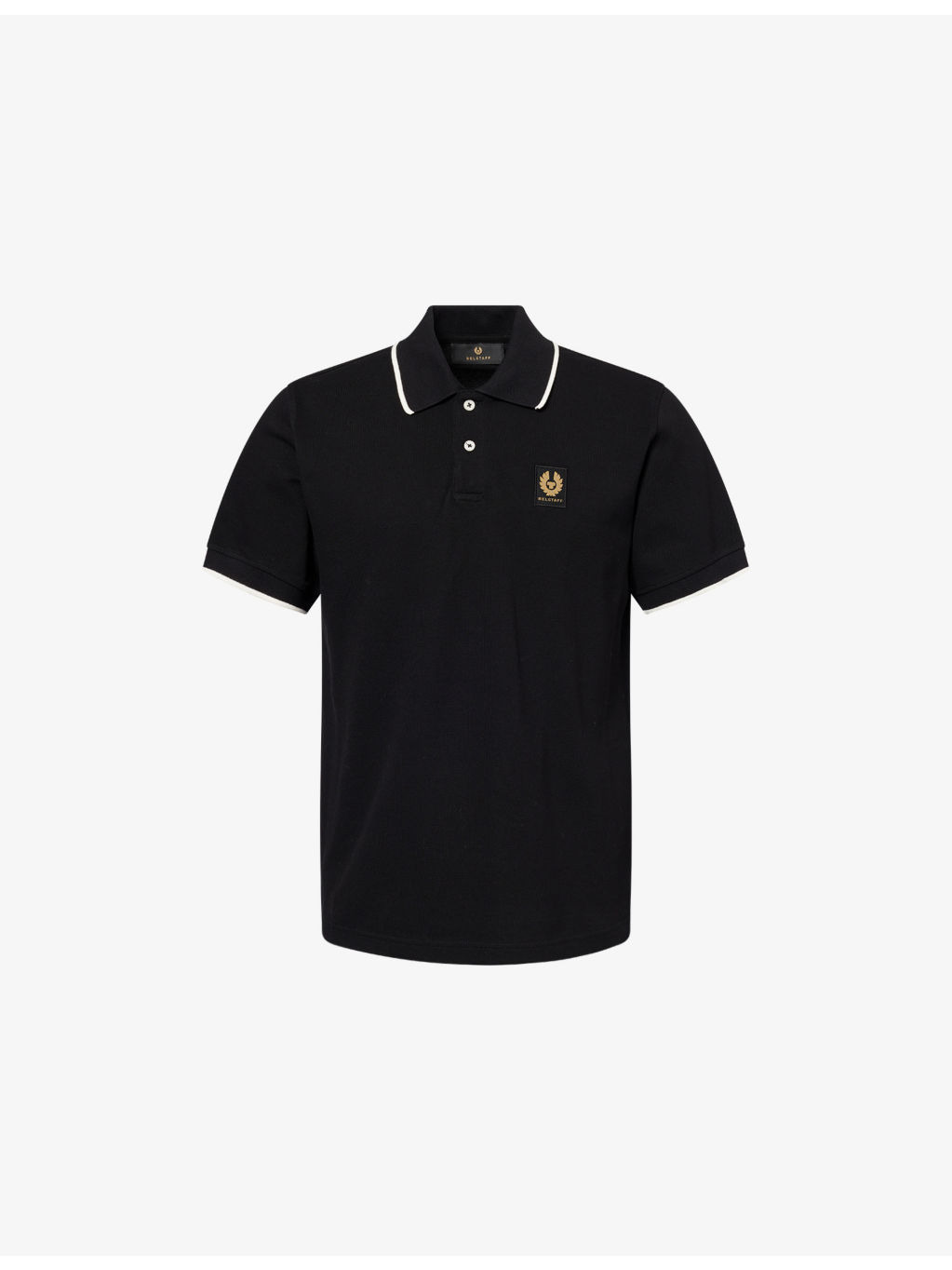 PRODUCT DETAILS - Belstaff cotton-pique polo shirt - 100% cotton - Button fastening at front - Regular fit, polo collar, short sleeves, logo patch at chest, striped ribbed trims - Machine wash at 30°C - Made in Turkey - Model is 6ft 2in/1.88m and wears a size medium - Lightweight, slight stretch Ref: R04491200