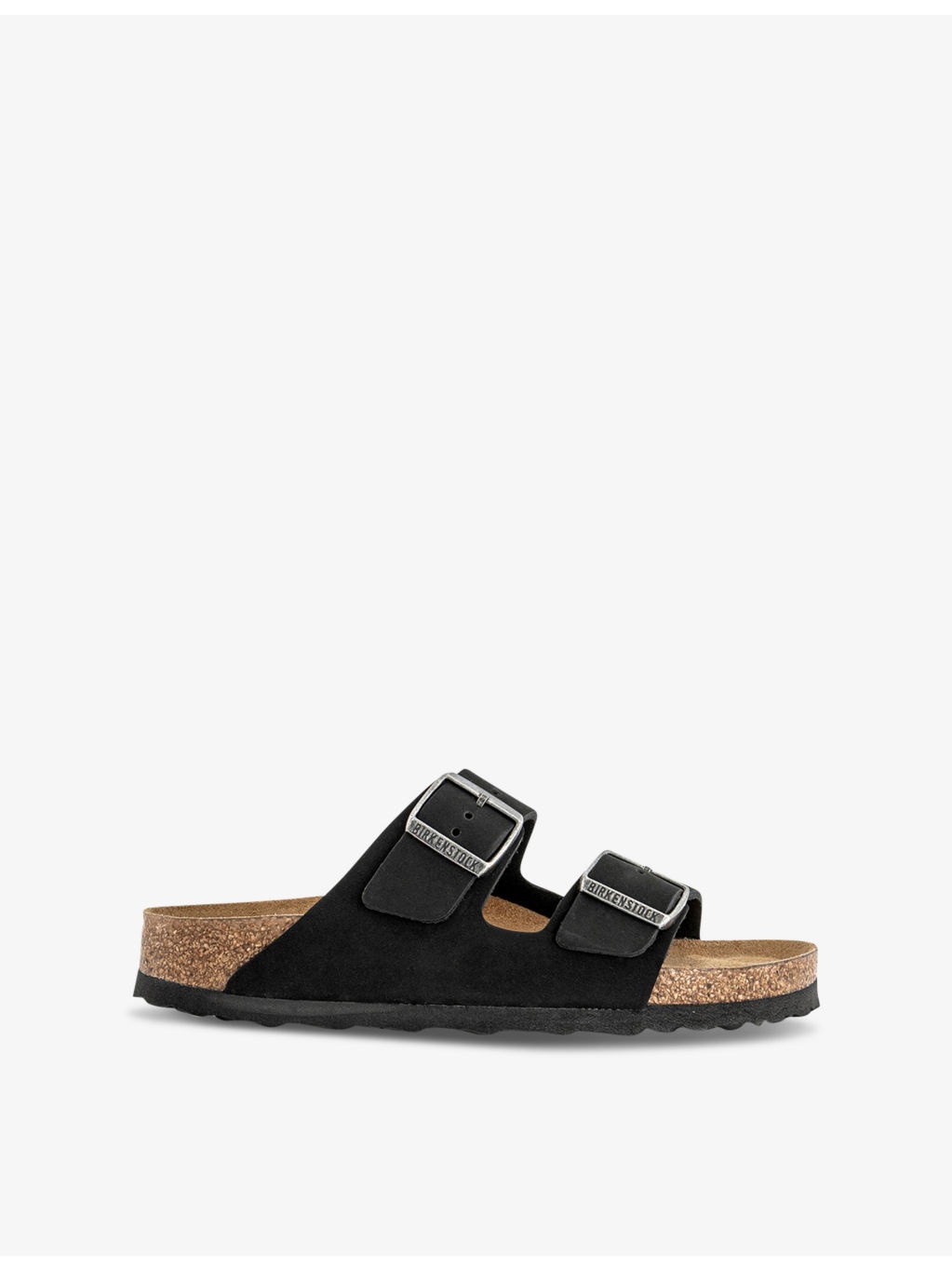 PRODUCT DETAILS - Birkenstock leather sandals - 100% leather - Round open toe, narrow-fit, double straps at front, logo engraved buckles, contrast padded foot bed, raised-ribbed sole, metal hardware - Specialist leather clean - Made in Germany - Upper: 100% leather - Lining: 100% suede - Sole: 100% ethylene vinyl acetate Ref: R04468921