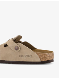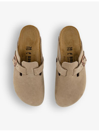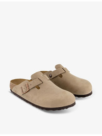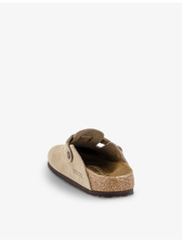 PRODUCT DETAILS - Birkenstock suede clogs - 100% suede - Slips on - Round closed toe, open back, buckle strap at front, branded hardware, signature moulded EVA sole, embossed logo at side - Specialist leather clean - Upper: 100% suede - Lining: 100% leather - Sole: 100% cork Ref: R04247642