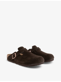 Boston logo-embossed suede clogs