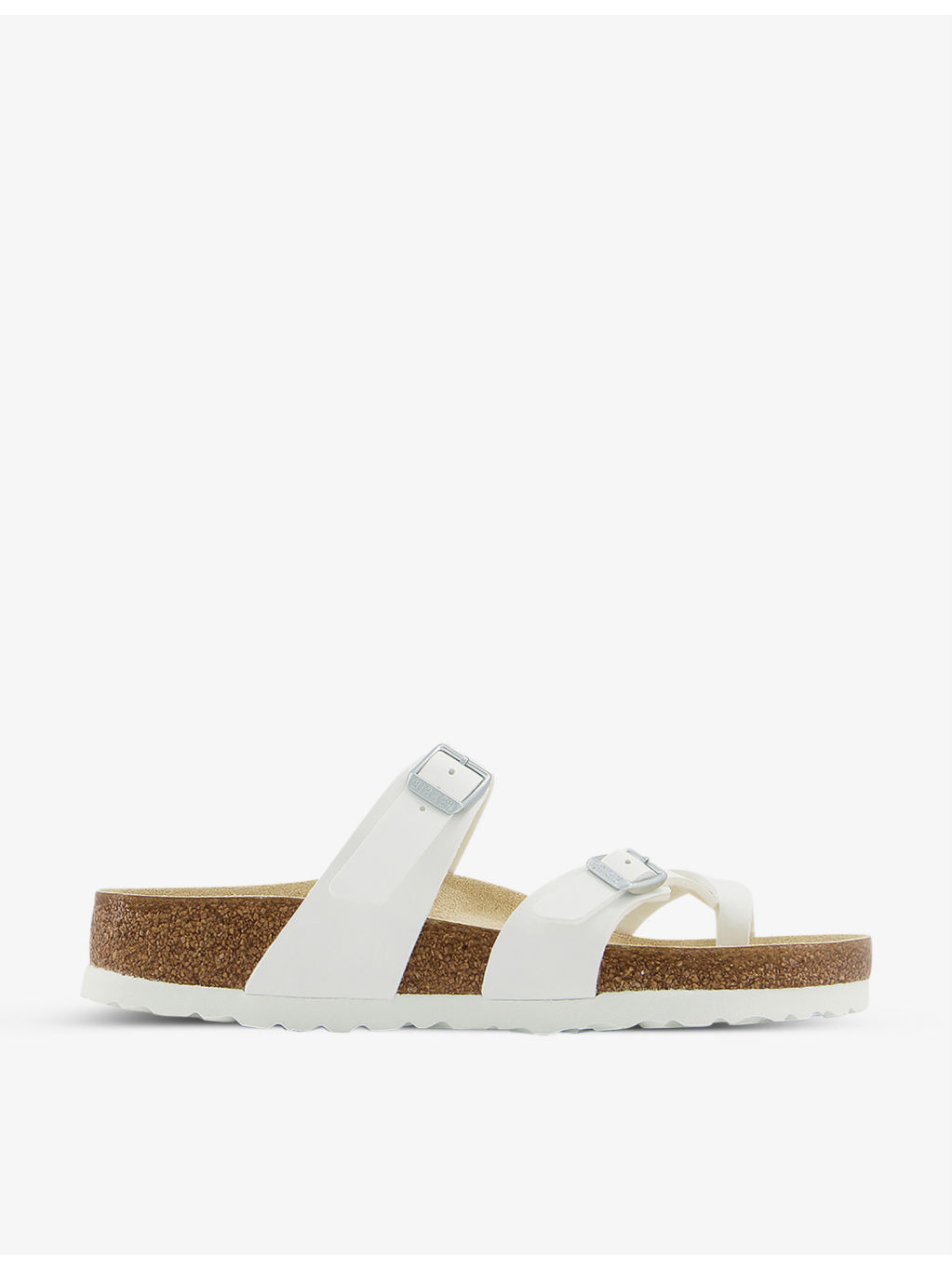 PRODUCT DETAILS - Birkenstock faux-leather sandals - Birko-Flor® - Slips on - Two straps, each with an individually adjustable metal pin buckle; toe loop - Made in Germany - Upper: Birko-Flor® - Lining: suede - Sole: EVA Ref: 0843-10036-1940810000