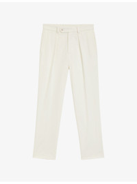 PRODUCT DETAILS - Beckham x BOSS stretch-cotton trousers - 98% cotton, 2% elastane - Button, hook-and-eye and zip-fly fastening - Slim fit, mid-rise, belt loops, two pockets at the side, tailored fit, straight leg - Dry clean - Model is 6ft 2in/1.88m and wears a size medium - Lightweight, slight stretch Ref: R04481160