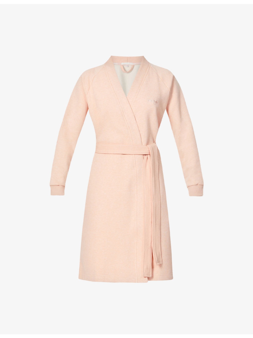 PRODUCT DETAILS - BOSS cotton-blend kimono - 60% cotton, 40% polyester - Self-tie fastening - Regular fit, long sleeves, V neck, self-tie fastening, ribbed trims, logo embroidered on the chest, straight hem - Machine wash mild - True to size