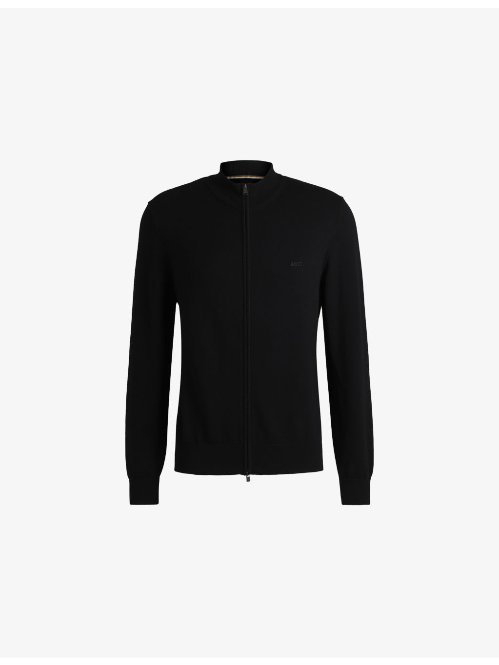 PRODUCT DETAILS - BOSS cotton-knit cardigan - 100% cotton - Exposed zip fastening at front - Regular fit, stand collar, long sleeves, brand embroidery at chest, ribbed trims to collar, cuffs and hem - Machine wash cold - Lightweight, non-stretch Ref: R04332743