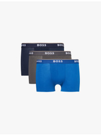 PRODUCT DETAILS - BOSS pack of three stretch-cotton trunks boxer - 95% cotton, 5% elastane - Pulls on - Mid-rise, branded elasticated waistband, supportive panel at front - Machine wash cold - Model is 6ft 2in/1.88m and wears a size medium - Lightweight, slight stretch - For hygiene reasons, this product cannot be exchanged or refunded, unless faulty. Ref: R04352999