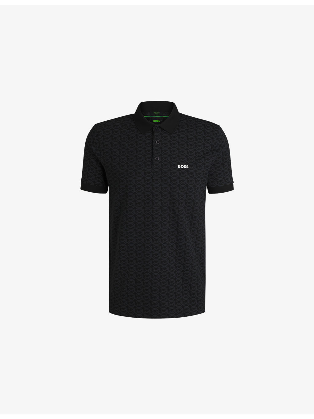 PRODUCT DETAILS - BOSS stretch-cotton polo - 95% cotton, 5% elastane - Regular fit, polo collar, logo embroidery at the chest, short sleeves, all-over graphic print - Machine wash at 30°C - Model is 6ft 1in/1.85m and wears a size medium - Midweight, slight-stretch Ref: R04358971