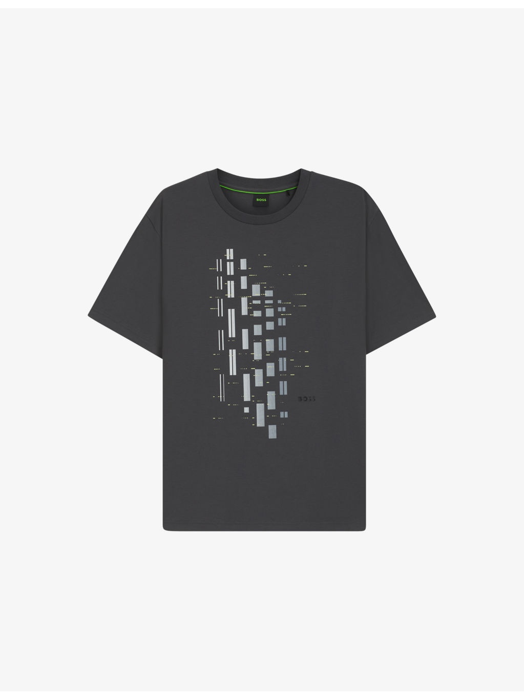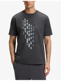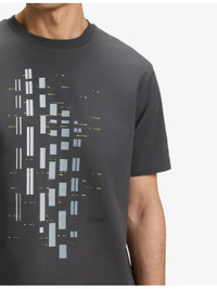 PRODUCT DETAILS - BOSS stretch-cotton T-shirt - 95% cotton, 5% elastane - Regular fit, crewneck, short sleeves, all-over geometric pattern, logo print - Machine wash at 30°C - Model is 6ft 2in/1.88m and wears a size large - Lightweight, slight stretch Ref: R04488034