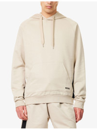 PRODUCT DETAILS - BOSS cotton-jersey hoody - 100% cotton - Relaxed fit, drawstring hood, raglan long sleeves, kangaroo pocket and brand embroidery at front, contrast panels at sides, ribbed trims - Machine wash at 40°C - Model is 6ft 2in/1.88m and wears a size medium - Midweight, stretchy Ref: R04454540