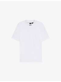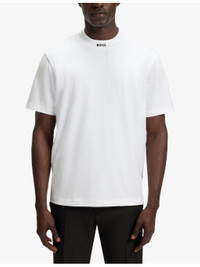 PRODUCT DETAILS - BOSS stretch-cotton T-shirt - 95% cotton, 5% elastane - Relaxed fit, crewneck, logo at collar, short sleeves - Machine wash at 30°C - Model is 6ft 1in/1.85m and wears a size M - Lightweight, non-stretch Ref: R04488239
