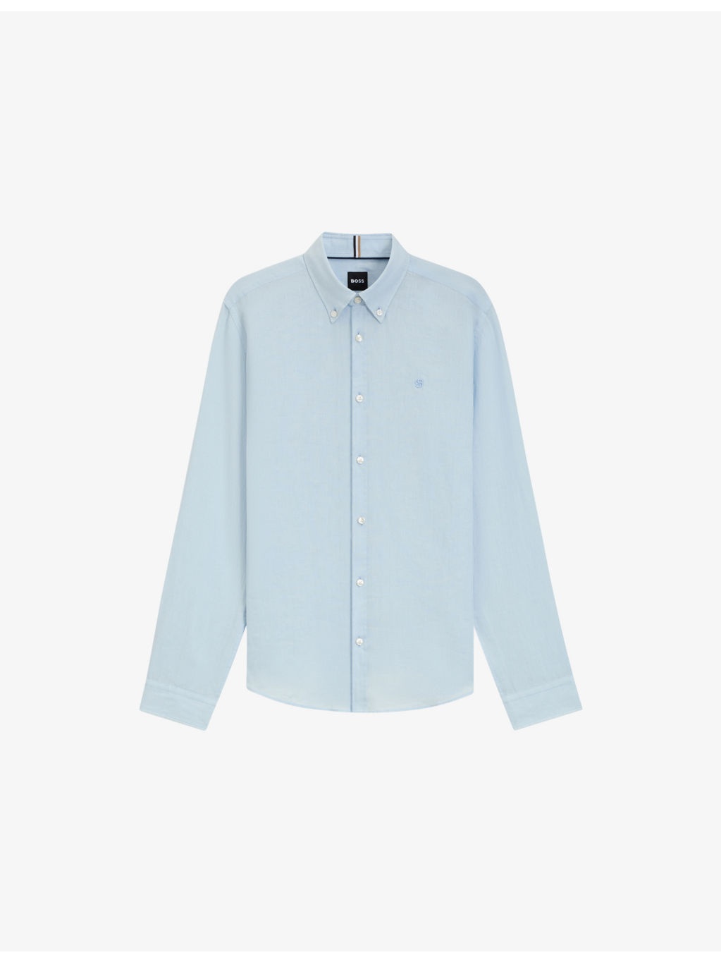 PRODUCT DETAILS - BOSS linen shirt - 100% linen - Exposed button fastening at front - Regular fit, button-down collar, logo embroidery at the chest, long sleeves with rounded cuffs - Machine wash at 30°C - Model is 6ft 2in/1.87m and wears a size 32 - Lightweight, non stretch Ref: R04488125