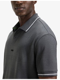 PRODUCT DETAILS - BOSS cotton polo - 100% cotton - Exposed button fastening at front - Regular fit, polo collar, logo embroidery at the chest, short sleeves, striped trims - Machine wash at 30°C - Model is 6ft 3in/1.90m and wears a size medium - Lightweight, non-stretch Ref: R04488114
