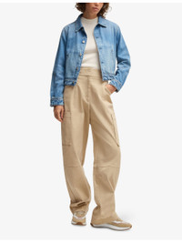 PRODUCT DETAILS - BOSS stretch-cotton trousers - 98% cotton, 2% elastane - Button, hook-and-eye and zip-fly fastening - Relaxed fit, mid-rise, straight leg, waistband with belt loops, two slip pockets at front, two flap pockets at leg, two welt pockets at back - Machine wash at 30°C - Midweight, non-stretch Ref: R04359770