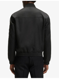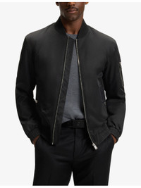 PRODUCT DETAILS - BOSS woven jacket - 100% polyester - Exposed zip fastening at front - Regular fit, ribbed collar, long sleeves, zipped pocket at the sleeves, two pockets at the side, with silver-tone hardware - Dry clean - Model is 6ft 2in/1.88m and wears a size medium - Midweight, non-stretch Ref: R04488113