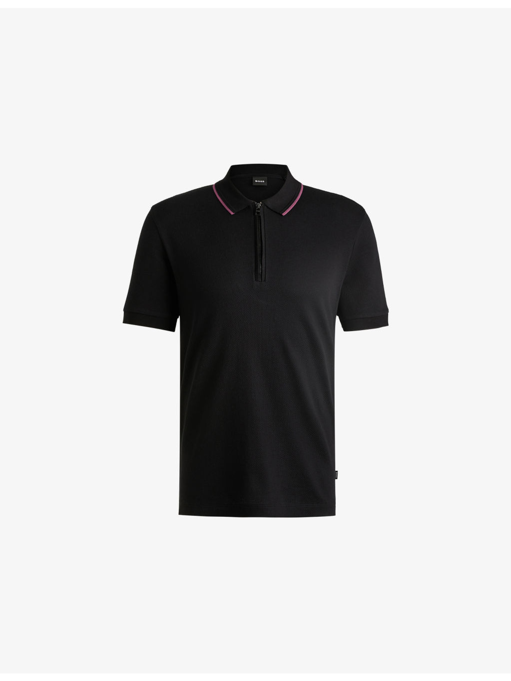 PRODUCT DETAILS - BOSS cotton polo shirt - 100% cotton - Zip fastening - Regular fit, collar, short sleeves, contrast trim, woven textured finish - Dry clean - True to size - Lightweight, non-stretch Ref: R04330900