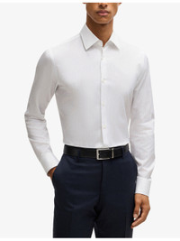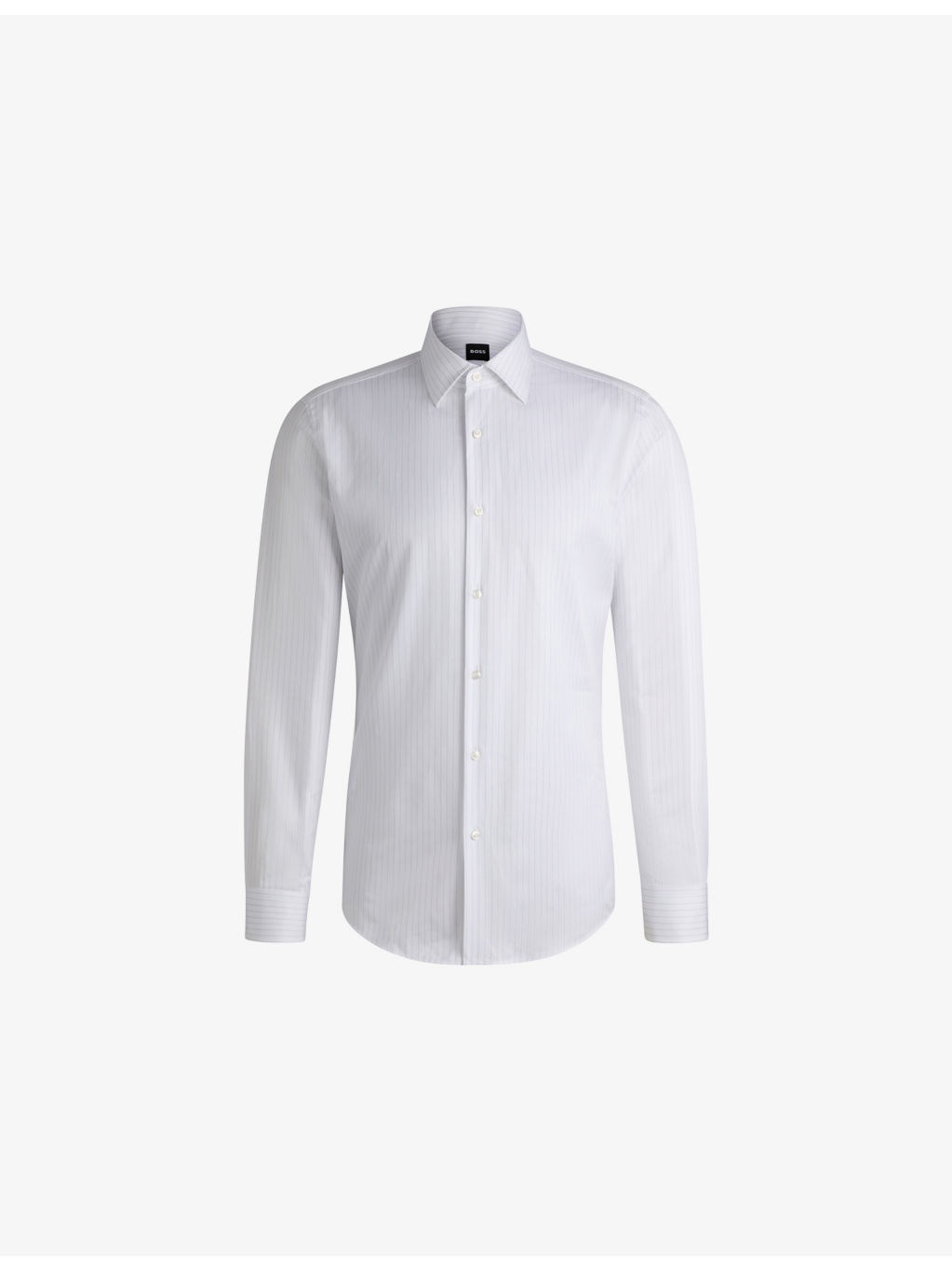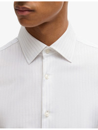 PRODUCT DETAILS - BOSS cotton shirt - 100% cotton - Exposed button fastening at front - Slim fit, collar, long sleeves, all-over striped pattern, buttoned cuffs - Machine wash cold - Lightweight, non-stretch Ref: R04329821