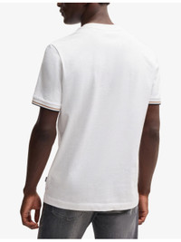 PRODUCT DETAILS - BOSS cotton-jersey T-shirt - 100% cotton - Pulls on - Regular fit, round neck, short sleeves, striped trim at cuffs, branded tab at side - Machine wash mild - Lightweight, non-stretch Ref: R04185876