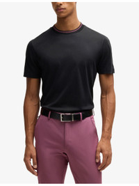 PRODUCT DETAILS - BOSS cotton-jersey T-shirt - 100% cotton - Pulls on - Slim fit, crewneck, short sleeves, striped trim at neckline, branded tab at side, ribbed trim at neckline - Machine wash cold - Lightweight, non-stretch Ref: R04332817