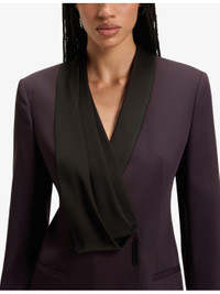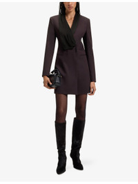 PRODUCT DETAILS - BOSS wool mini dress - 100% wool - Hook-and-eye fastening - Regular fit, tuxedo style, V-neck, contrast lapels, long sleeves, side pockets - Dry clean - True to size - Model is 5ft 10in/1.78m and wears a size UK 8 - Midweight, slight stretch Ref: R04512360