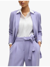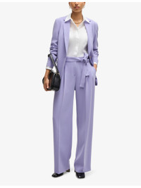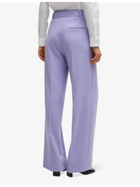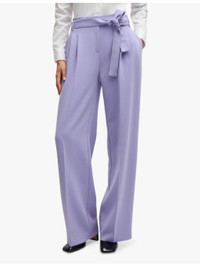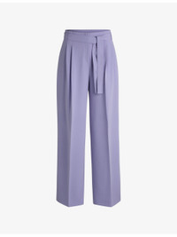 PRODUCT DETAILS - BOSS woven trousers - 69% triacetate, 31% polyester - Concealed button, hook-and-eye and zip-fly fastening at front - Relaxed fit, high rise, self-tie belt at the waist, two pockets at the side, welt pocket at the back, wide leg - Dry clean - True to size - Model is 5ft 10in/1.78m and wears a size UK 8 - Lightweight, non-stretch Ref: R04250027