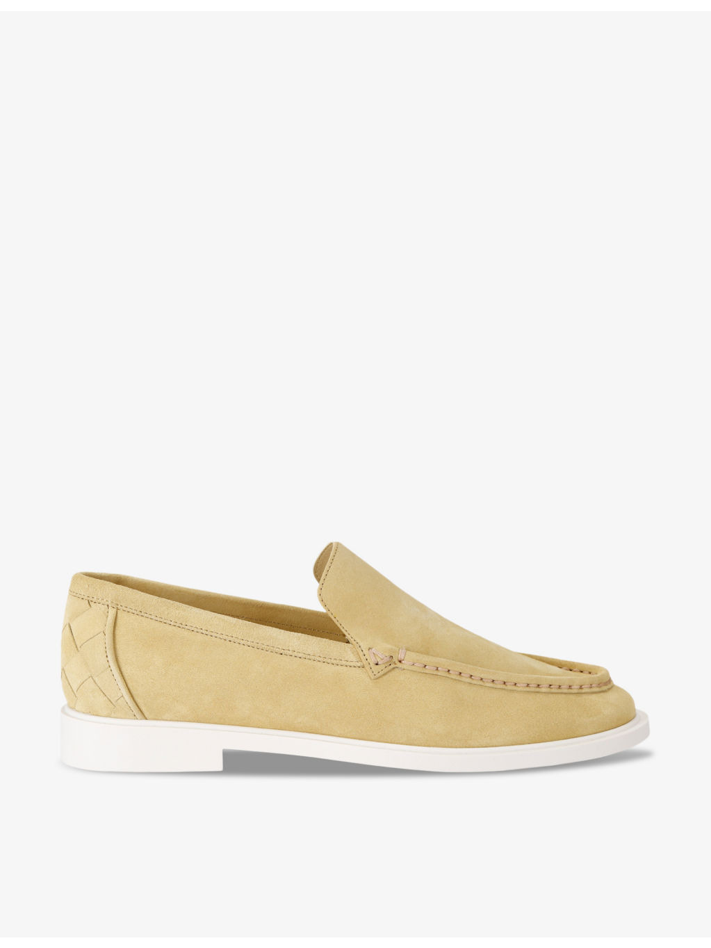 PRODUCT DETAILS - Bottega Veneta suede loafers - 100% suede - Slips on - Closed toe, contrast sole, Intrecciato embellishment at heel - Specialist leather clean - Made in Italy - Upper: 100% suede - Lining: 100% leather - Sole: 100% rubber Ref: R04300239