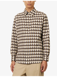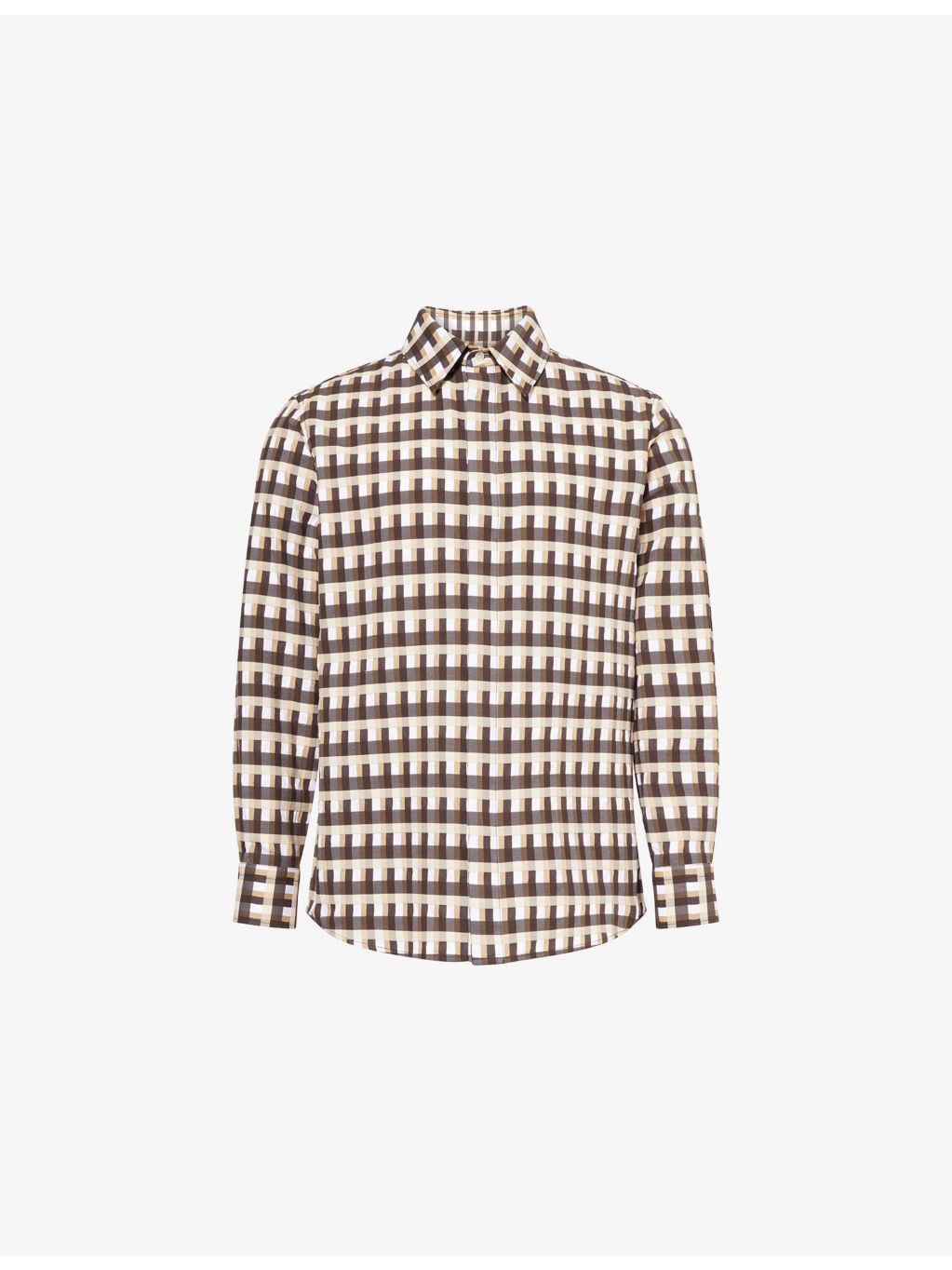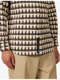 PRODUCT DETAILS - Bottega Veneta cotton-poplin shirt - 100% cotton - Concealed button fastenings at front - Spread collar - Buttoned cuffs - Relaxed fit, collar, long sleeves, all-over check print, straight yoke at back, textured - Dry clean - Made in Italy - Size UK 40: length 29in / 74cm, chest 44in / 122cm - Model is 6ft 2in/1.88m and wears a size UK 40 - Lightweight, stretchy Ref: R04462267