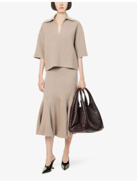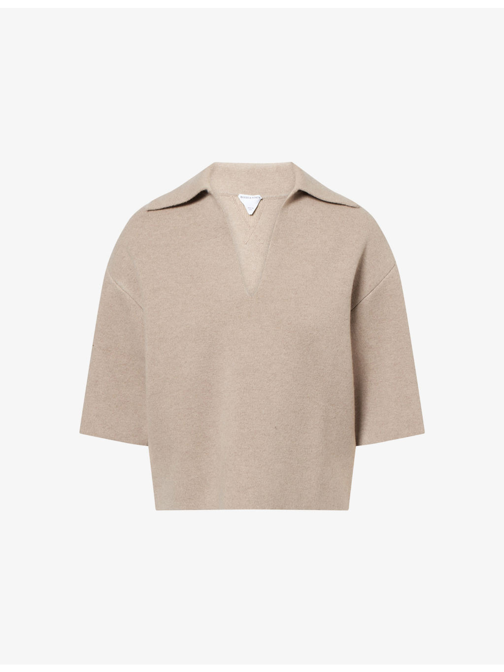 PRODUCT DETAILS - Bottega Veneta cashmere-blend polo shirt - 84% cashmere, 16% polyamide - Relaxed fit, V-neck polo collar, short sleeves, all-over knitted and ribbed - Dry clean - Made in Italy - True to size - Model is 5ft 10in/1.78m and wears a size small - Midweight, stretchy Ref: R04508473