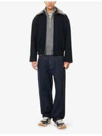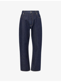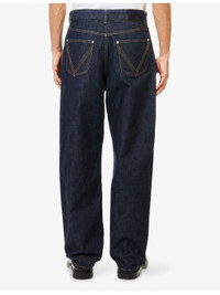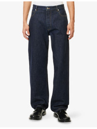 PRODUCT DETAILS - Bottega Veneta denim jeans - 100% cotton - Button and button-fly fastening - Wide leg, mid-rise, structured waistband with belt loops, classic five pockets, signature brand patch at back, branded hardware, contrast topstitching. - Machine wash cold - Made in Italy - Size UK 32: rise 12.9in / 33cm, inside leg 31.4in / 80cm, leg opening 18.1in / 46cm - Model is 6ft 2in/1.88m and wears a size UK 32 - Midweight, non-stretch Ref: R04539277