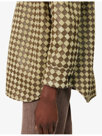 PRODUCT DETAILS - Bottega Veneta suede and leather shirt - 100% lamb leather - Button fastening - Regular fit, collar, long sleeves, buttoned sleeve hems, signature intrecciato weave, curved hem - Specialist leather clean - Made in Italy - True to size - Model is 5ft 10in/1.78m and wears a size UK 8 - Midweight, non-stretch Ref: R04462039