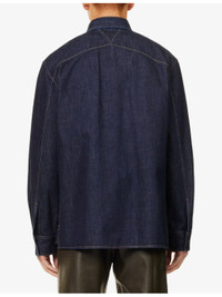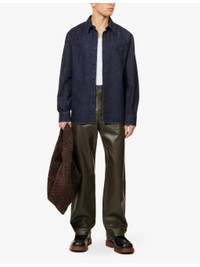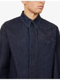 PRODUCT DETAILS - Bottega Veneta denim shirt - 100% cotton; pocketlining 65% polyester, 35% cotton - Concealed button fastenings at front - Spread collar - Buttoned cuffs - Regular fit, collar, long sleeves, flap pocket at front, V-yoke shape at back, split at sides - Machine wash at 30°C - Made in Italy - Size UK 40: length 29in / 75cm, chest 46in / 117cm - Model is 6ft 2in/1.88m and wears a size UK 40 - Lightweight, slight stretch Ref: R04381415
