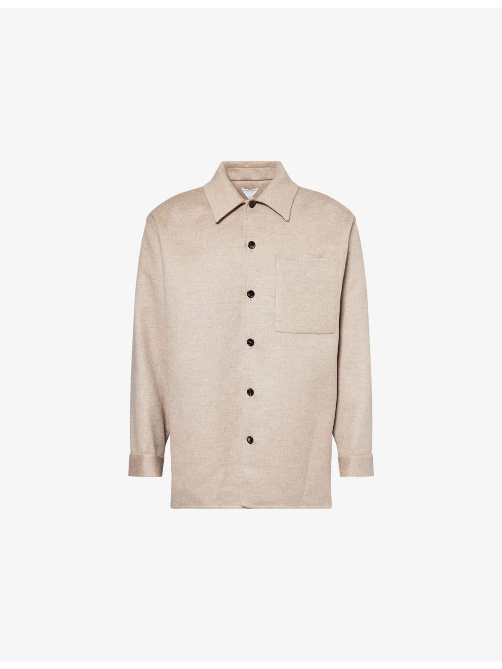 PRODUCT DETAILS - Bottega Veneta wool-cashmere blend overshirt - 80% wool, 20% cashmere - Button fastening - Notched collar, long sleeves, buttoned cuffs, one patch pocket at front, curved hem - Dry clean - Made in Italy - Size UK 40: length 34.2in / 87cm, chest 49.6in / 261cm - Model is 6ft 2in/1.88m and wears a size UK 40 - Lightweight, non-stretch Ref: R04509168