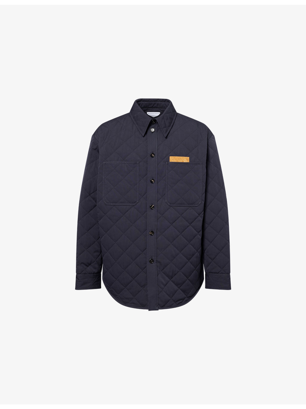 PRODUCT DETAILS - Bottega Veneta Cotton-Blend Overshirt - 79% cotton, 21% polyamide - Button fastening - Loose fit, pointed collar, long sleeves, button cuffs, patch pockets at front, quilted padding - Dry clean - Made in Italy - Size 40: length 32in / 81.28cm, chest 50in / 127cm - Model is 6ft 2in/1.88m and wears a size UK 40 - Midweight, non-stretch Ref: R04462284