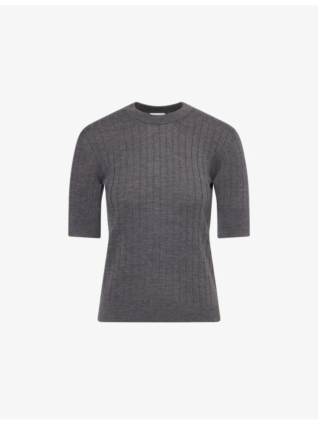 PRODUCT DETAILS - Bottega Veneta wool top - 100% wool; trims 89% wool, 10% polyamide, 1% elastane - Slim fit, round-neck, short sleeves, all-over ribbed and knitted - Dry clean - Made in Italy - True to size - Model is 5ft 10in/1.78m and wears a size small - Lightweight, stretchy Ref: R04462034