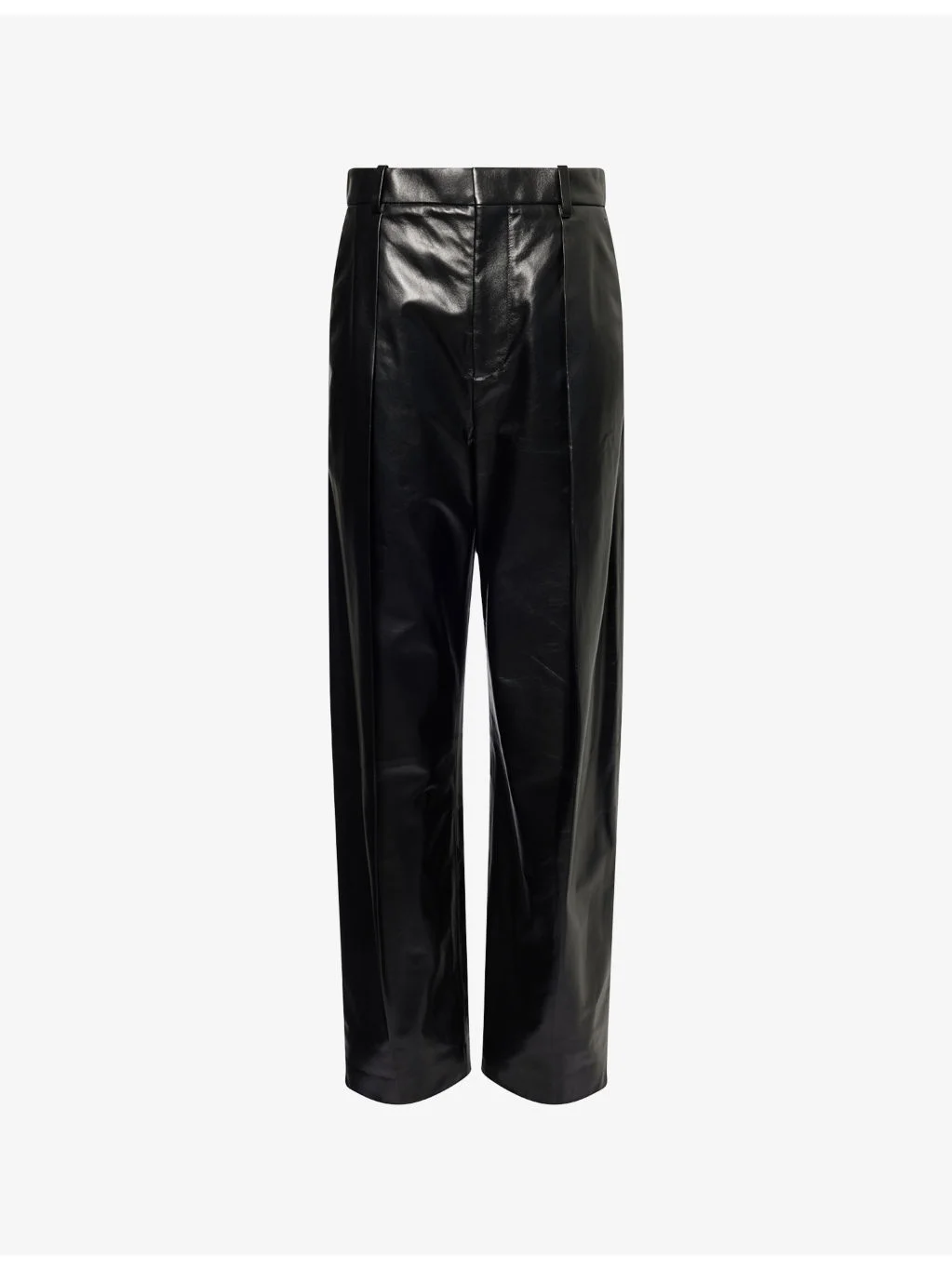 PRODUCT DETAILS - Bottega Veneta leather trousers - 100% leather - Concealed button, hook-and-eye and zip-fly fastenings at front - Regular fit, mid-rise, tapered leg, belt loops, front pleats, side slip pockets, welt pockets at back - Specialist leather clean - Made in Italy - True to size - Size UK 8: rise 14in / 36cm, inside leg 30.5in / 78cm, leg opening 17in / 43cm - Model is 5ft 10in/1.78m and wears a size UK 8 - Lightweight, non-stretch Ref: R04462040