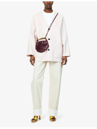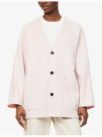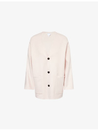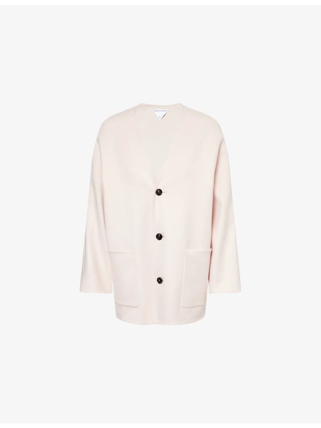 PRODUCT DETAILS - Bottega Veneta wool and cashmere coat - 80% wool, 20% cashmere - Exposed button fastening at front - Relaxed fit, single-breasted, V-neck, raglan long sleeves, two patch pockets at front, all-over felt texture, unlined - Dry clean - Made in Italy - True to size - Size UK 8: length 29in / 74cm - Model is 5ft 10in/1.78m and wears a size UK 8 - Midweight, stretchy Ref: R04462036