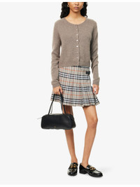 Check-Print Pleated Wool Mini Skirt