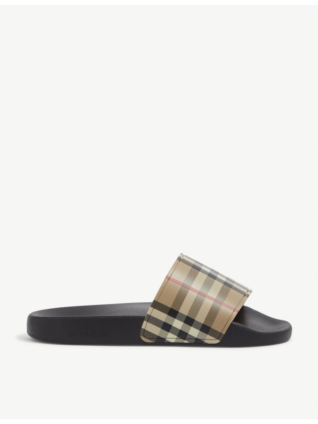PRODUCT DETAILS - Burberry rubber sliders - Slips on - Signature vintage check print, contoured insole, contrast sole, embossed logo - Specialist leather clean - Upper: Thermoplastic polyurethane - Lining: Thermoplastic polyurethane - Sole: Rubber Ref: R03626820