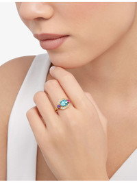 PRODUCT DETAILS - Bvlgari 18ct yellow-gold, pink tourmaline, amethyst, aquamarine and 0.2ct diamond ring - 100% 18ct yellow gold - Slips on - Contrasting stones, polished finish - Carat weight: 0.2ct - Carat cut: round brilliant - Carat clarity: IF-VS - Carat colour: D-G - Please refer to the brand's care instructions - Made in Italy - Bvlgari prides itself on providing excellent customer service. This includes contacting customers to offer after-sales care and share details about its brand and products. As such, when you order a Bulgari product from us, your details will be passed onto Bvlgari so that it can provide these services to you. Ref: R04319508