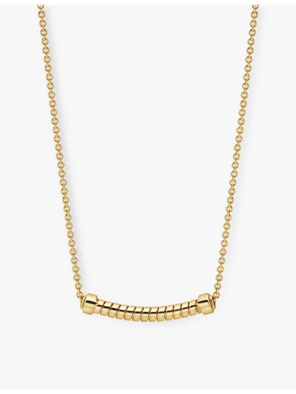 PRODUCT DETAILS - Bvlgari 18ct yellow-gold necklace - 100% 18ct yellow gold - Lobster-clasp fastening - Bvlgari Tubogas pendant at centre, adjustable chain, brand engraved, polished finish - Chain type: cable chain - Chain length: 41-43cm - Made in Italy - Please use a soft, dry polishing cloth - Two-year manufacturer's warranty Ref: R04377114