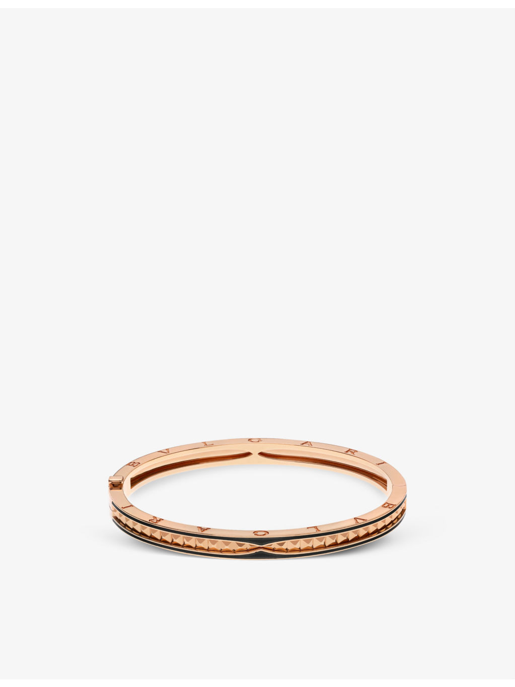PRODUCT DETAILS - Bvlgari 18ct rose-gold and ceramic bangle bracelet - 100% 18ct rose gold - Ceramic - Hinge closure - Engraved branding, ceramic detailing, studded surface - Diameter 15cm - Wipe with a clean, dry cloth - Made in Italy - Bvlgari prides itself on providing excellent customer service. This includes contacting customers to offer after-sales care and share details about its brand and products. As such, when you order a Bvlgari product from us, your details will be passed onto Bvlgari so that it can provide these services to you. Ref: R03926119