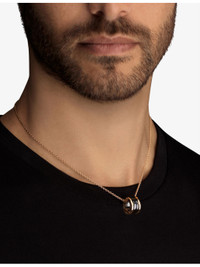 PRODUCT DETAILS - Bvlgari 18ct rose-gold and ceramic pendant necklace - 80% 18ct rose gold, 20% ceramic - Ring pendant, polished finish, logo engraved at each end, adjustable chain - Chain type: cable chain - Chain length: 54cm-60cm - Wipe with a clean, dry cloth - Made in Italy - Bvlgari prides itself on providing excellent customer service. This includes contacting customers to offer after-sales care and share details about its brand and products. As such, when you order a Bvlgari product from us, your details will be passed onto Bvlgari so that it can provide these services to you Ref: R03926043