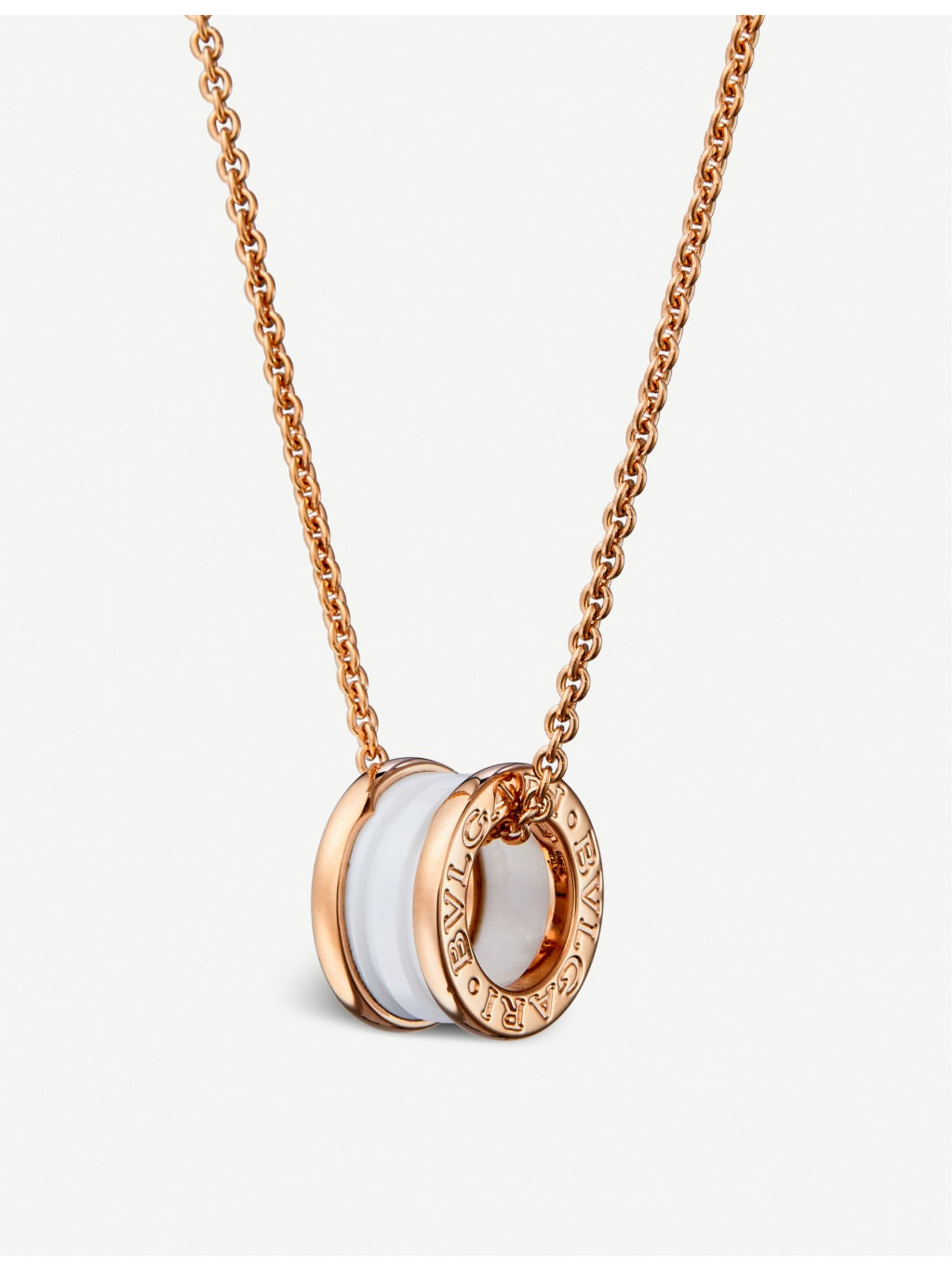 B.zero1 18ct rose-gold and white-ceramic pendant necklace