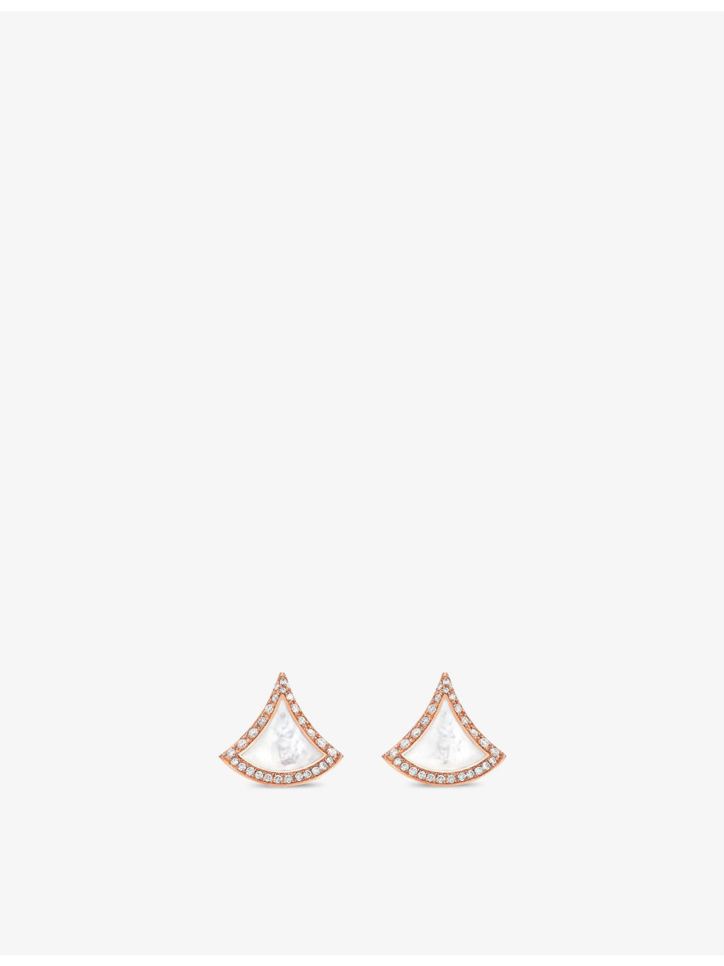 PRODUCT DETAILS - Bvlgari Divas’ Dream 18ct rose-gold, 0.1ct diamond and mother-of-pearl earrings - 100% 18ct rose gold - Diamonds, mother-of-pearl - Post-back fastening - Pave-set diamonds, fan-shaped silhouette, polished finish, sold as a pair - Carat weight: 0.01ct - Carat cut: brilliant cut - Dimensions: - Please refer to the brand’s care instructions - Made in Italy Ref: R03997890