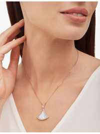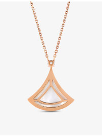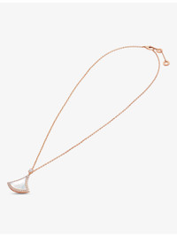 PRODUCT DETAILS - Bvlgari 18ct rose-gold, mother-of-pearl and 0.5ct round brilliant-cut diamond necklace - 100% 18ct rose gold - Mother of pearl, diamonds - Fan-shaped pendant, diamond encrusted, polished - Made in Italy - Carat weight: 0.5ct - Carat cut: round brilliant - Chain type: cable chain - Chain length: 41-43cm - Please use a soft, dry polishing cloth - Bvlgari prides itself on providing excellent customer service. This includes contacting customers to offer after-sales care and share details about its brand and products. As such, when you order a Bvlgari product from us, your details will be passed onto Bvlgari so that it can provide these services to you. Ref: R03993292